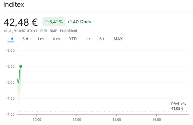 Tržby v obchodech a na internetu se ve finančním roce, který končí v lednu, zvýšily o 10,4 procenta na rekordních 35,9 miliardy eur. I v tomto případě Inditex coby největší světový prodejce levných oděvů naplnil odhad analytiků, kterých se dotazovala společnost LSEG. Inditex ale nesplnil vlastní loňskou předpověď, která počítala s nárůstem tržeb o 17,5 procenta.