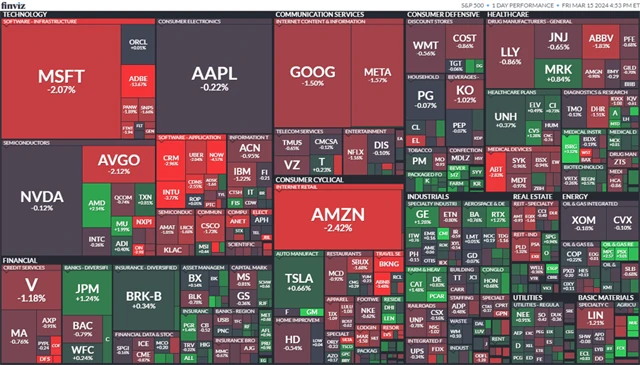 Cena akcií softwarové společnosti Adobe (-13,67 %) v pátek prudce spadla, protože výhled podniku pro druhé čtvrtletí zaostal za odhady analytiků. Nedařilo se ani technologickým společnostem, jejichž pokles byl tažen cennými papíry Microsoftu (-2,07 %), Alphabetu (-1,34 %), Amazonu (-2,42 %) či Mety Platforms (-1,57 %).