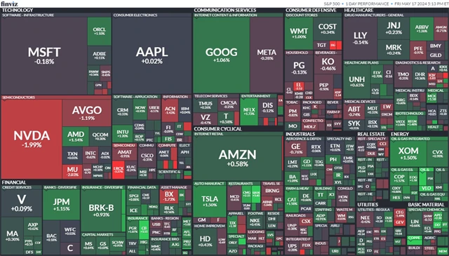 V pátek posílilo 7 z 11 dílčích sektorů indexu S&P 500. Nejlépe si vedly energetické společnosti, zatímco největší ztráty zaznamenal technologický sektor. Nedařilo se akciím firem NVIDIA (-1,99 %), Micron Technology (-2,03 %), Meta Platforms (-0,28 %) či Microsoft (-0,19 %). Naopak cenné papíry společností Alphabet (+1,12 %), Amazon (+0,58 %) a Tesla (+1,50 %) posílily. Dařilo se také akciím sociální sítě Reddit (+10,04 %), a to především díky zprávě o partnerství s firmou OpenAI.