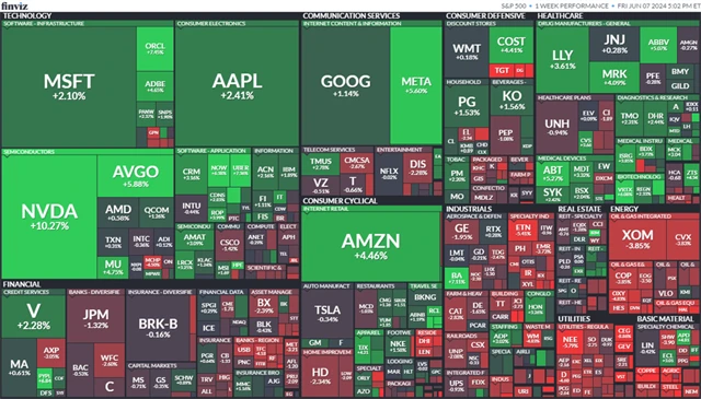 V rámci celého týdne si z velkých titulů vedle Nvidie nejlépe vedly cenné papíry společností PayPal (+6,84 %), Broadcom (+5,88 %), Meta Platforms (+5,60 %) či Amazon (+4,45 %).