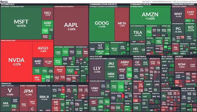Akcie Nvidie (-3,22 %) v pátek korigovaly, když v týdnu dosáhly historického maxima. Cenné papíry výrobce čipů si letos připisují téměř 156 %. Vůbec poprvé se firmě podařilo předstihnout Microsoft v tržní kapitalizaci a stala se krátce nejhodnotnější veřejně obchodovanou společností.