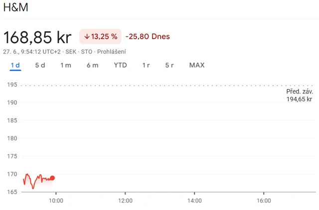 Provozní zisk švédského prodejce oděvů H&M se ve druhém čtvrtletí meziročně zvýšil na 7,1 miliardy švédských korun (15,6 miliardy Kč) ze 4,7 miliardy SEK (10,4 miliardy Kč), zaostal ale za odhady. Firma to uvedla ve svém čtvrtečním sdělení. Zároveň předpověděla pokles červnových tržeb a zpochybnila celoroční výhled ziskové marže. Její akcie se v reakci propadly o více než 14 %.