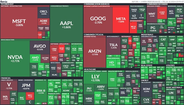 V páteční seanci oslabily akcie bankovních společností JPMorgan Chase (-1,17 %), Citigroup (-1,81 %) a Wells Fargo (-6,02 %), které v pátek zveřejnily výsledky hospodaření za druhé čtvrtletí. Některé z největších společností na trhu se ale po čtvrtečním poklesu odrazily výše. Posílily tak například akcie firem Apple (+1,31 %) a NVIDIA (+1,47 %). Investoři sázejí na silný růst velkých technologických podniků, které těží z růstu zájmu o umělou inteligenci. Mezi nejobchodovanější cenné papíry patřil výrobce elektromobilů Tesla (+2,99 %).