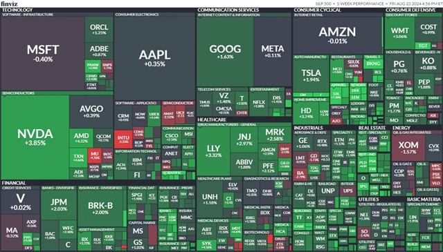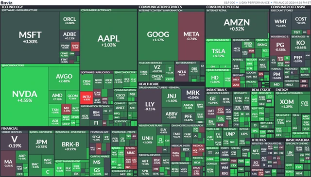 Americké akcie v závěru týdne posílily. Ostře sledovaný projev guvernéra americké centrální banky Jeromea Powella v Jackson Hole investoři přijali kladně. Nejvíce se dařilo cenným papírům z technologického odvětví, protože blížící se prostředí nižších úrokových sazeb by sektoru mělo hrát do karet. Na devizovém trhu v pátek klesl dolar.