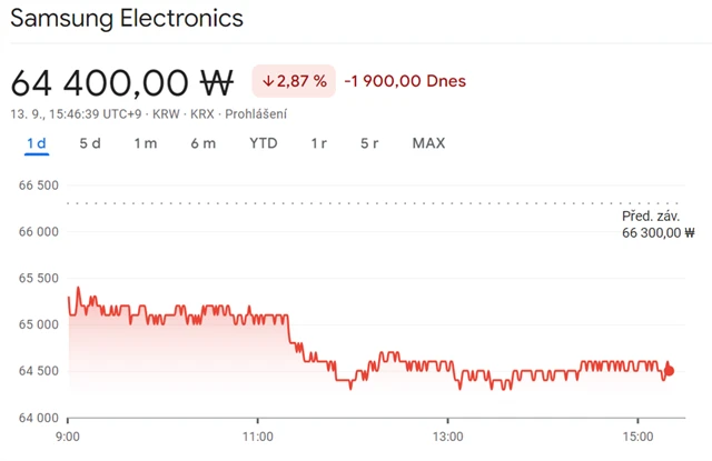 Akcie společnosti Samsung Electronics kotované na jihokorejské burze podle údajů LSEG tento týden zatím klesly již o více než 6 %.