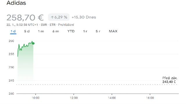 Akcie Adidasu po silném růstu čtvrtletních tržeb posílily o 6 %