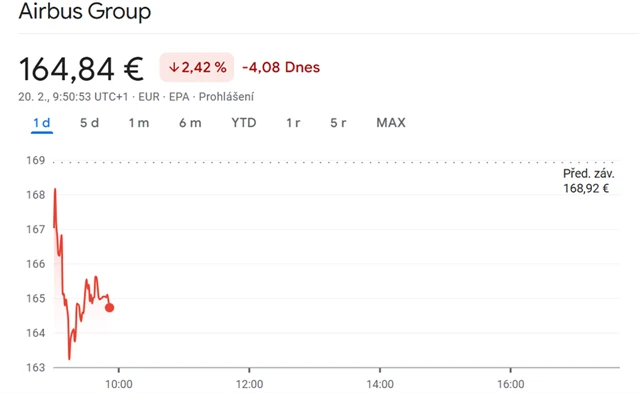 Navzdory splnění loňských cílů a silným finančním výsledkům trh na oznámení zareagoval negativně. Akcie Airbusu se ve čtvrtečním ranním obchodování propadly o více než 2 %.