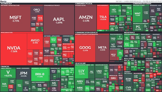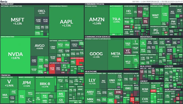 Hlavní indexy se v pátek na chvíli ocitly v červených číslech poté, co Donald Trump spolu s viceprezidentem J. D. Vancem v mimořádné situaci před médii ostře diskutovali s ukrajinským prezidentem Volodymyrem Zelenským v Bílém domě. Lídři měli jednat o dohodě týkající se ukrajinských nerostných surovin, což investoři zprvu vnímali jako potenciální první krok k ukončení války s Ruskem. Dokud se situace v Oválné pracovně nevyhrotila.