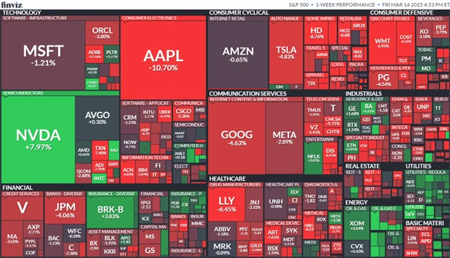Ani páteční "nádech" nestačil na to, aby tři hlavní indexy zakončily týden v zelených číslech. Dow oslabil o 3,07 %, což byl jeho nejhorší výkon od března 2023. Index S&P 500 odepsal 2,27 % a Nasdaq Composite korigoval o 2,43 %.