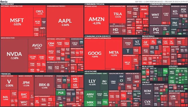Akcie se v pátek dostaly pod další tlak po zveřejnění finálního indexu spotřebitelské důvěry Michiganské univerzity za březen, který ukázal na nejvyšší dlouhodobá inflační očekávání od roku 1993. Zpráva o jádrovém indexu výdajů na osobní spotřebu (PCE) rovněž nemile překvapila.
