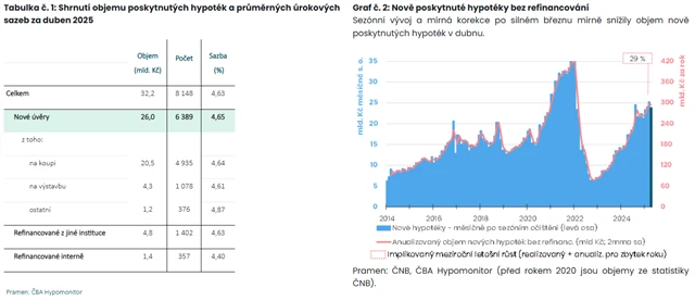 ČBA Hypomonitor: V dubnu poskytly banky a stavební spořitelny nové hypotéky za 26 miliard Kč
