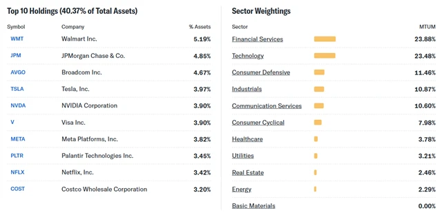 Mezi nejtěžšími váhami v ETF najdeme řadu velkých technologických firem, první dvě pozice ale patří Walmartu a bance JPMorgan.