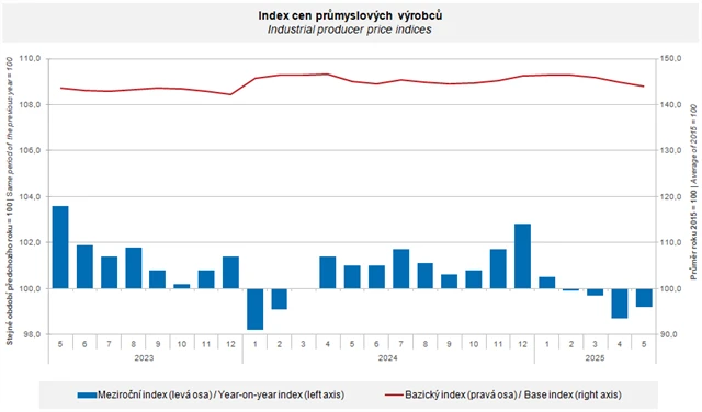 Ceny tuzemských průmyslových výrobců v květnu meziměsíčně i meziročně klesly