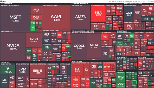 Vedle geopolitických rizik trh nervózně reagoval i na čerstvá data o maloobchodních tržbách v USA, které v květnu klesly o 0,9 %. To naznačuje, že spotřebitelé začínají být opatrnější, než se domnívali ekonomové. Slabší data přišla těsně před zasedáním FOMC. Analytici očekávají, že centrální banka ponechá sazby beze změny, ale slabý výsledek může dát prostor pro mírnější postoj v příštích měsících. Trh nyní sází na dvě snížení sazeb do konce roku, první z nich v září.