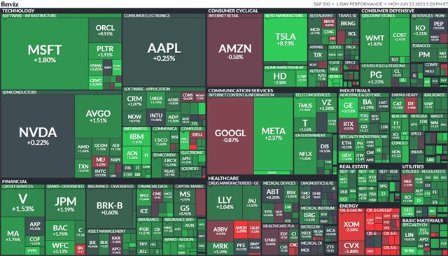 Akciové trhy v pondělí výrazně posílily, zatímco ceny ropy prudce klesly. Investoři reagovali s úlevou na to, že íránská odveta za víkendové útoky USA na jaderná zařízení ve Fordó, Isfahánu a Natanzu byla mírnější, než se čekalo. Írán oznámil útok na americkou základnu v Kataru, nebyly ale hlášeny žádné oběti a o útoku byly informace známé předem.