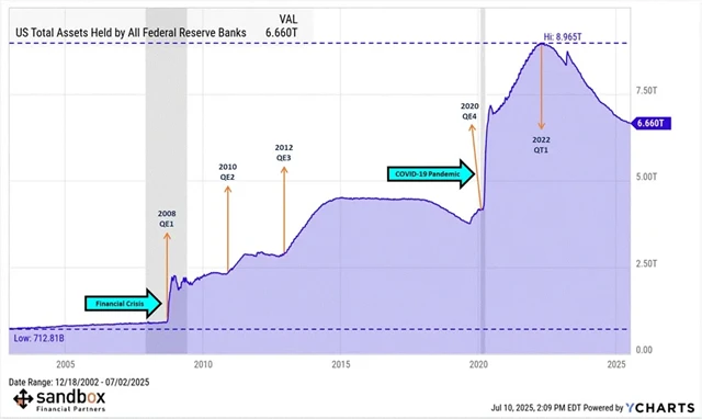 Od června 2022 provádí Fed takzvané kvantitativní utahování, při kterém nechává splatné cenné papíry ze své bilance "vypršet" bez reinvestice. Současná bilance Fedu je 6,66 bilionu dolarů, což je nejméně od dubna 2020 a o 2,3 bilionu méně než maximum 8,97 bilionu z dubna 2022.