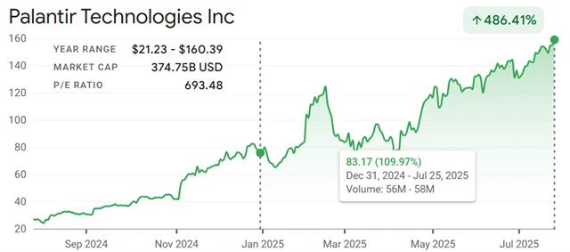 Akcie Palantiru v pátek posílily o dalších 2,54 %, čímž společnost dosáhla nové rekordní tržní kapitalizace 375 miliard dolarů. Díky tomu se zařadila mezi 20 nejhodnotnějších firem v USA, a předstihla tak mimo jiné Home Depot, Procter & Gamble nebo Coca-Colu. Od začátku roku se hodnota firmy více než zdvojnásobila, především díky rostoucím investicím do jejích nástrojů umělé inteligence a těsnějším vazbám na americkou vládu.