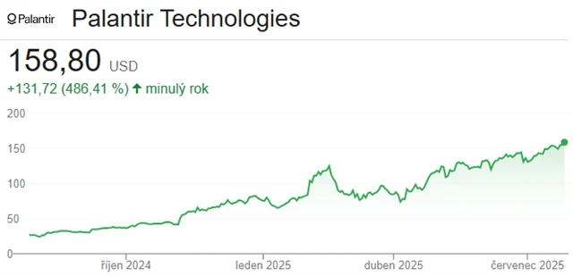 Cena akcií softwarové společnosti Palantir Technologies letos vzrostla na více než dvojnásobek. Investoři sázejí na umělou inteligenci a kontrakty od americké vlády. Akcie Palantiru v pátek posílily o dalších 2,54 %, čímž společnost dosáhla nové rekordní tržní kapitalizace 375 miliard dolarů. Díky tomu se zařadila mezi 20 nejhodnotnějších firem v USA, a předstihla tak mimo jiné Home Depot, Procter & Gamble nebo Coca-Colu. Od začátku roku se hodnota firmy více než zdvojnásobila, především díky rostoucím investicím do jejích nástrojů umělé inteligence a těsnějším vazbám na americkou vládu.