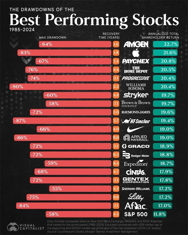 Například po krachu akciového trhu na začátku pandemie covidu-19 ztratily akcie United Airlines 76 %, zatímco S&P 500 "jen" 30 %. Přesto investice do United Airlines v té době by přinesla dvojnásobný výnos oproti indexu. Podobné příklady se opakují (NVIDIA v letech 2018 nebo 2022), Netflix a Meta Platforms v roce 2022, Rolls-Royce o dva roky dříve nebo třeba Amazon v roce 2000.