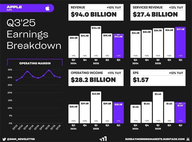 Apple ve čtvrtek po konci obchodování na burze zveřejnil hospodářské výsledky za třetí fiskální čtvrtletí, které překonaly očekávání analytiků na rovině zisku i tržeb. Celkové příjmy firmě vzrostly meziročně o 10 %. Jde o nejvýraznější čtvrtletní růst od konce roku 2021. Tržby z prodeje iPhonů se ve čtvrtletí zvýšily o 13 %.