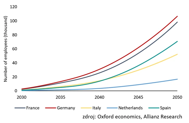 Dosažení cílů nulových emisí do roku 2050 v sektoru nemovitostí bude podle analýzy Allianz Trade vyžadovat značné investice. Pro 4 největší ekonomiky EU (Německo, Francie, Itálie a Španělsko) to bude znamenat výdaje okolo 3 bilionů eur (kolem 120 miliard za rok) do kumulativních renovací souvisejících s energií.