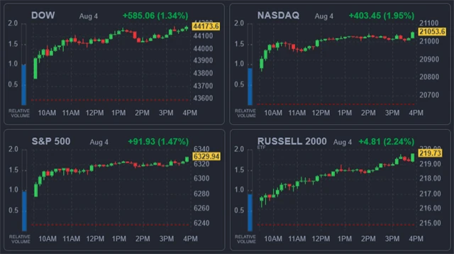 Index Dow posílil o 1,34 % a uzavřel na 44 173,64 bodu, širší index S&P 500 vzrostl o 1,47 % na 6 329,94 bodu a přerušil čtyřdenní sérii poklesů, technologický Nasdaq Composite si připsal 1,95 % na 21 053,58 bodu a index akcií malých firem Russell 2000 zpevnil o 2,10 % na 2 212,30 bodu. Index volatility VIX spadl o 14,03 % na 17,52 bodu a výnos 10letých vládních dluhopisů USA klesl o jeden a půl bazického bodu na 4,196 %. Ceny ropy klesly o procento a půl, zlato zdražilo o 0,3 % a stříbro o procento, dolarový index klesl o zhruba 0,4 % na 98,76 bodu a bitcoin zdražil asi o 0,6 % na 115 160 USD.