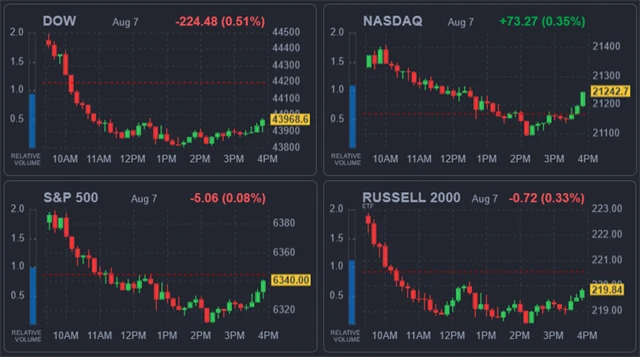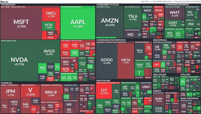 Úvodní růst indexů podpořilo středeční oznámení Donalda Trumpa o zavedení 100% cla na dovážené čipy s výjimkou firem, které vyrábějí v USA. Tato zpráva podpořila akcie výrobců čipů (NVIDIA +0,75 %, AMD +5,69 %). Pokračoval také růst ceny akcií Applu (+3,18 %) poté, co dříve oznámil, že během následujících čtyř let utratí dalších 100 miliard dolarů u amerických firem a dodavatelů. Jde o doplnění k únorovému závazku v objemu 500 miliard dolarů. Prezident Donald Trump v této souvislosti uvedl, že firmy vyrábějící nebo plánující výrobu v USA cla platit nebudou.
