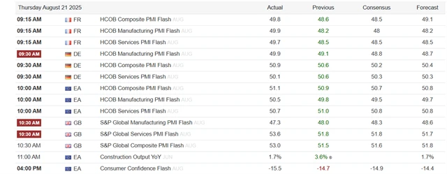 Západoevropské akciové indexy čtvrteční seanci zakončily nejednotně. Investoři dopoledne vyhodnocovali předběžné srpnové indexy nákupních manažerů. Později přišla zpráva o podpisu rámcové obchodní dohody mezi Evropskou unií a Spojenými státy, reakce trhu ale byla vlažná. (21. 8. 2025)