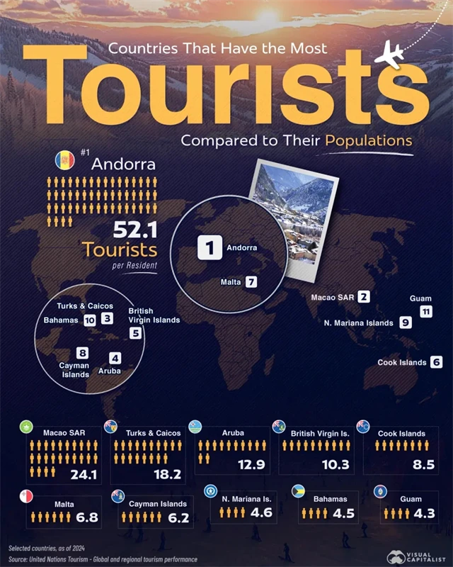 Turisté jsou ve většině zemí vítaným zdrojem příjmů. Jenže čeho je moc, toho je příliš. I proto se v těch nejpopulárnějších destinacích stále častěji protestuje proti nadmíře turismu, který dělá z center měst skanzeny a deformuje realitní trh. Ve kterých destinacích turisté nejvíce převyšují počet místních, ukazuje následující mapa.