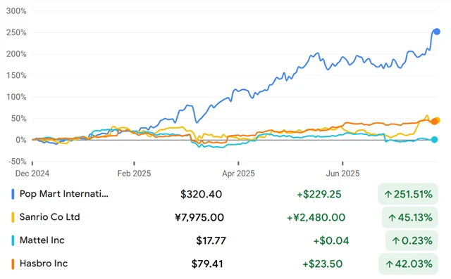 V úterý Pop Mart zveřejnil výsledky za první polovinu roku 2025. Ty potvrdily, že mánie Labubu není jen krátkodobý trend, ale silný byznys. Tržby meziročně vzrostly o 204 % na 13,88 miliardy jüanů (1,93 miliardy dolarů). Čistý zisk se zečtyřnásobil na 4,57 miliardy jüanů (+396 %). Po zveřejnění výsledků akcie firmy zpevnily o 12 % na nové historické maximum. Od začátku roku vzrostla cena akcií o zhruba 250 % a za poslední rok skoro o 600 %.