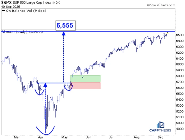 Index S&P 500 ve středu intradenně stoupl na 6 555 bodů. "12. května, když se index posunul nad 5 695, stanovili jsme si cílovou hodnotu právě na 6 555. Tehdy byl index o necelých 18 % výše než na minimu z 8. dubna, od té doby za čtyři měsíce přidal 'jen' okolo 14 %," říká investiční manažer a blogger Frank Cappelleri. "To je poměrně typický vývoj po obratu výše z významného minima. Nejprve prudká rally, následně stabilní růstový trend."