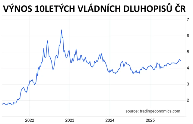 Část trhu (zejména zahraniční investoři) se bála, že vládní střídání stráží může vést k výraznějšímu zhoršení rozpočtové odpovědnosti státu a nárůstu veřejného zadlužení. I proto se český desetiletý dluhopis obchodoval před volbami na jedné z nejslabších úrovní za poslední dva roky (výnos se poprvé od podzimu 2023 vyšplhal nad 4,5 %).