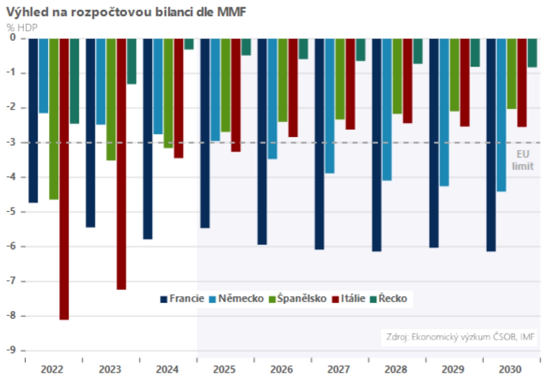 Právě vysoké veřejné výdaje a přebujelý sociální stát, který se stává stále nákladnější na údržbu, jsou hlavním důvodem masivních rozpočtových deficitů. A některé instituce otevřeně zpochybňují, zda je v možnostech francouzských vlád tyto schodky zásadně snížit. Například Mezinárodní měnový fond předpokládá, že do konce této dekády zůstanou francouzské rozpočtové deficity na úrovni 5–6 % HDP, zdaleka nejvyšší v rámci Evropské unie.
