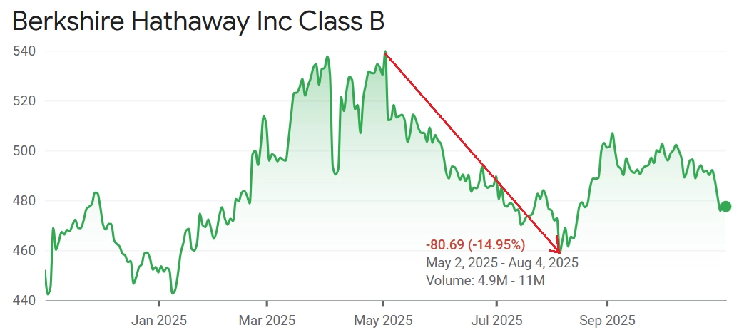 Společnost, kterou do konce letošního roku stále vede 95letý Warren Buffett, tak opět potvrdila mimořádnou výkonnost svých základních podniků, a to včetně železnic a pojišťoven. Přesto se Buffett rozhodl ani tentokrát neprovést žádné zpětné odkupy akcií firmy, a to navzdory výrazné korekci jejich ceny mezi květnem a srpnem.