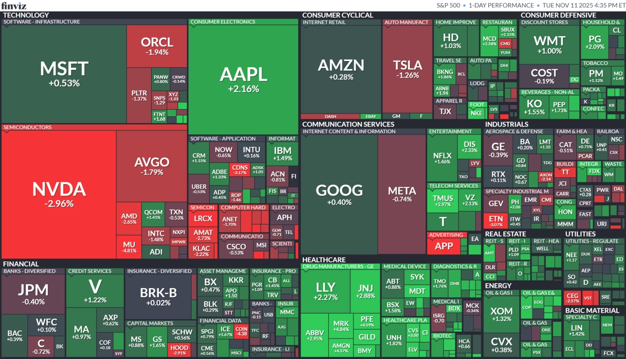 Trh ale celkově i v úterý měl tendenci setřásat obavy z dopadů rekordně dlouhého shutdownu. Senát v pondělí schválil návrh zákona, který by měl blokádu ukončit, a postoupil jej do Sněmovny reprezentantů. Dohoda sice neobsahuje demokratický požadavek na prodloužení dotací v rámci systému Obamacare, ale slibuje o nich hlasování v prosinci. I proto byla patrná úleva investorů v odvětví zdravotní péče a farmacie. "Politická polarizace ale zůstává výrazná a může vést investory k preferenci stabilnějších a kvalitnějších aktiv," upozornil Bill Fitzpatrick.