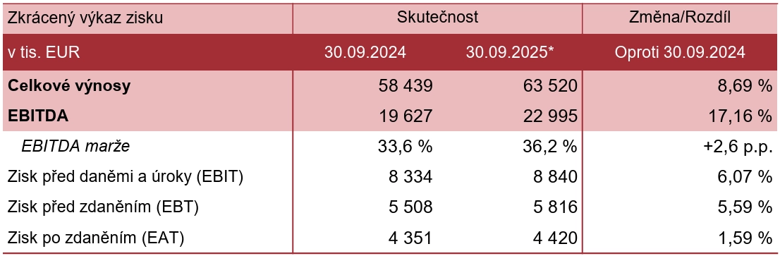 Společnost vykázala za prvních devět měsíců roku tržby přesahující 63 milionů eur, což představuje meziroční nárůst o 8,7 %. EBITDA dosáhl téměř 23 milionů eur, což znamená nárůst o více než 17 %, přičemž EBITDA marže byla 36 % (+2,6 procentního bodu meziročně). EBIT činil 8,84 milionu eur a zisk po zdanění byl 4,42 milionu eur.