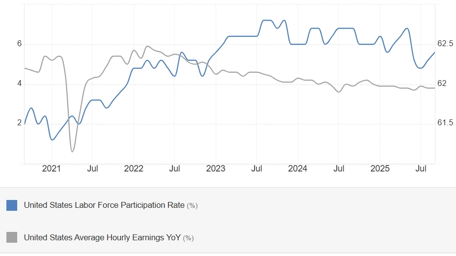 Míra participace, vyjadřující zapojení práceschopných lidí (zaměstnaných i nezaměstnaných) na trhu práce USA, stoupla o desetinu procentního bodu na 62,4 %.