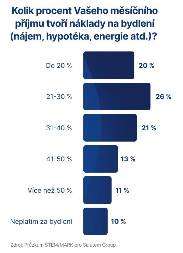 - 45 % Čechů dává na bydlení více než 30 % příjmů