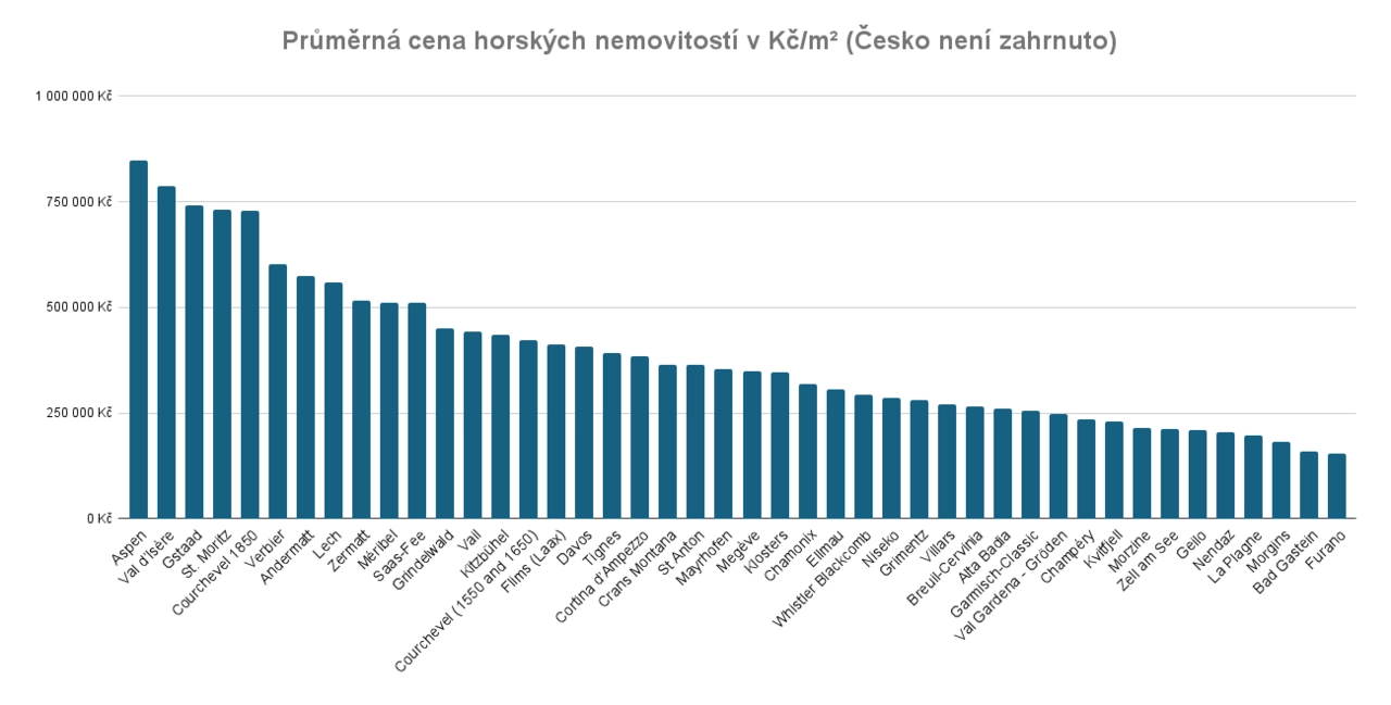 "V prémiových lokalitách v České republice jsou nabídkové ceny novostaveb velice vysoké. Například v Harrachově byla průměrná cena bytů o výměře 50 až 90 m² přibližně 174 000 Kč/m². Ve Špindlerově Mlýně dokonce 180 000 Kč/m²," říká Hana Kontriš, manažerka oborových služeb Seznam.cz. "V téhle relaci už jde koupit nemovitost například ve švýcarském lyžařském středisku Morgins, kde dosahuje cena asi 181 000 Kč/m²," doplňuje Lenka Pechová, analytička ze Savills.