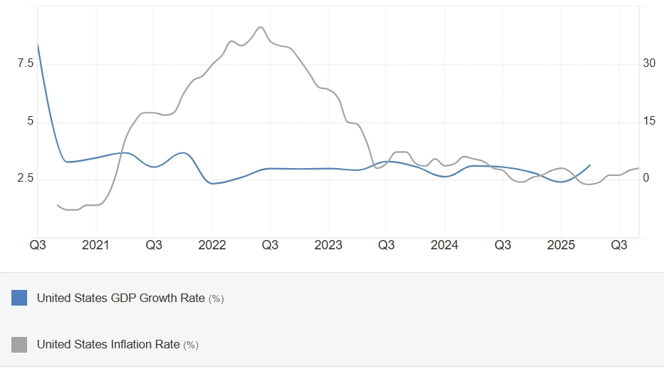 Americká ekonomika se na jaře zotavila z propadu v prvním čtvrtletí způsobeného dopady obchodní politiky prezidenta Donalda Trumpa. HDP Spojených států se v období od dubna do června v přepočtu na celý rok zvýšil o 3,8 %. V prvních třech měsících roku ekonomika anualizovaně klesla o 0,6 %. Mezitím ale inflace od dubna do září narostla z 2,3 % až na 3 %.