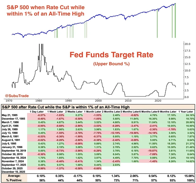 Americká centrální banka v prosinci podle očekávání snížila sazby a podle prvotní reakce se akciovým optimistům zamlouvala i nová prognóza a doprovodný komentář Jeromea Powella. Akciový index S&P 500 tak otestoval historické maximum. Snižování úroků v době, kdy jsou trhy na rekordech, je přitom historicky ve střednědobém horizontu velice pozitivní faktor.