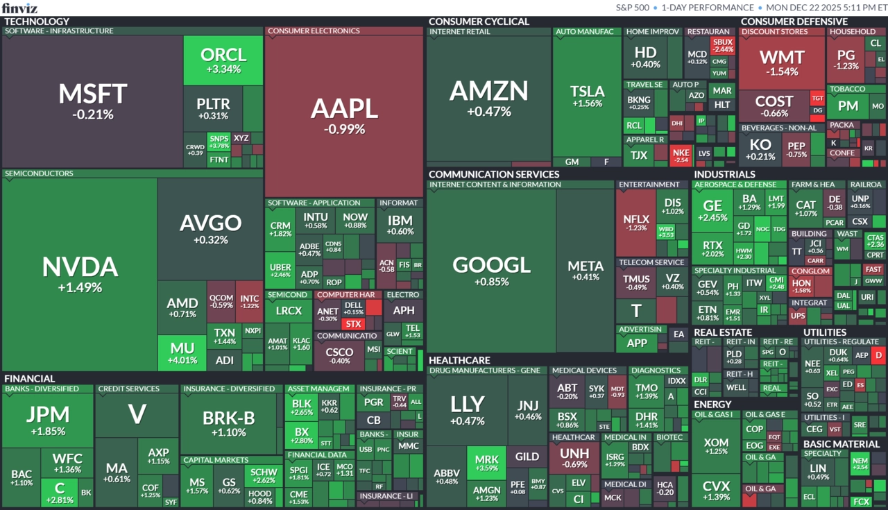 Investoři sledují, zda si akcie firem spojených s AI udrží vedoucí roli i ke konci roku, kdy část kapitálu míří do levnějších segmentů trhu kvůli obavám z vysokých valuací technologických firem. Zároveň panují pochybnosti, zda se dostaví takzvaná Santa Claus rally ("okénko" pro ni začíná 24. prosince).