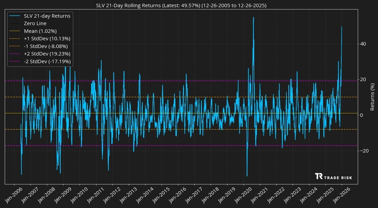 Cena stříbra za poslední měsíc stoupla o polovinu. Tomu se říká parabolický růst. Nemůže to trvat věčně, korekce po takovém vzestupu bývá také poměrně prudká. Ale Vánoce byly pro trh se stříbrem jedna velká párty.