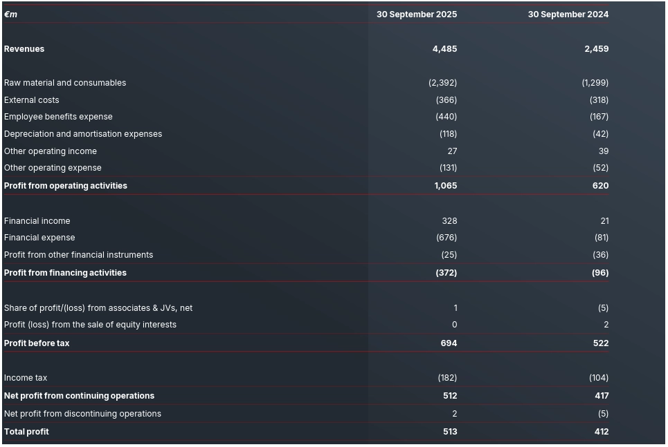 Hrubý dluh ke konci třetího čtvrtletí dosahoval 4,40 miliardy eur a výše čistého dluhu byla 3,57 miliardy eur.