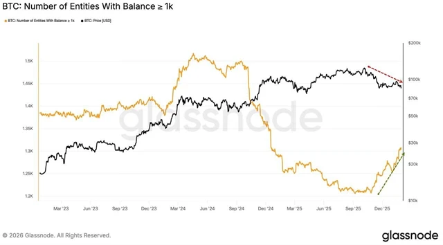 Cena bitcoinu z úrovní nad 120 tisíci dolary loni v říjnu spadla na současných méně než 80 tisíc. Medvědí trend jako z učebnice, i když zrovna kryptosvět pamatuje i dvakrát hlubší propady. Za pozornost každopádně stojí, že "buy the dip" probíhá i na trhu s bitcoinem, jen tenhle přístup zatím nepřevážil. Takzvané velryby, tedy účty s alespoň tisícem bitcoinů, ale nakupují ve velkém.