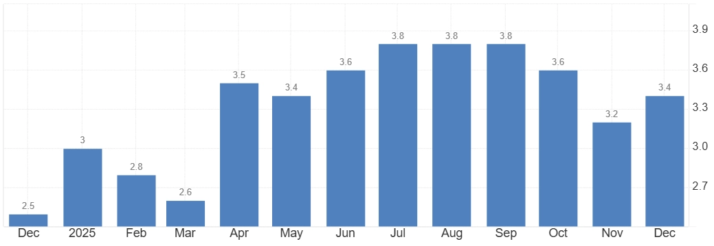 Centrální banka uvedla, že měnová politika je nastavována tak, aby inflace nejen dosáhla cíle 2 %, ale aby na této úrovni zůstala ve střednědobém horizontu. V prosinci přitom inflace stoupla na 3,4 % z listopadových 3,2 %.