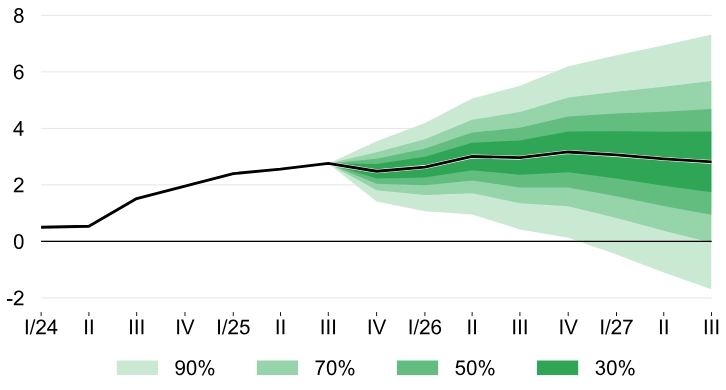 Tempo růstu domácí ekonomické aktivity se má v letošním a příštím roce pohybovat okolo 3 %. Za celý rok by se HDP měl zvýšit o 2,9 % a stejným tempem by měl vzrůst i příští rok.