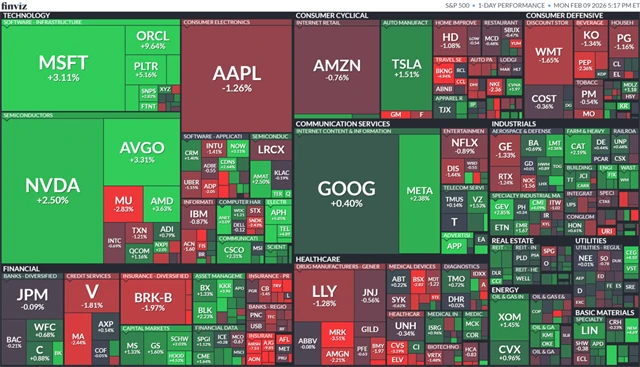 Index Dow si sice polepšil jen mírně o 0,04 % na 50 135,87 bodu, i tak ale vylepšil intradenní i závěrečný rekord. Širší index S&P 500 si připsal 0,47 % na 6 964,82 bodu, technologický Nasdaq Composite zpevnil o 0,90 % a uzavřel na 23 238,67 bodu a index akcií malých firem Russell 2000 se zvedl o 0,70 % na 2 689,05 bodu. Index volatility VIX klesl o 2,25 % na 17,36 bodu a výnos 10letých vládních dluhopisů USA se po intradenním vzestupu až o pět bazických bodů vrátil na 4,201 %. Ceny ropy vzrostly zhruba o procento a půl, zlato zdražilo skoro o dvě procenta a stříbro přidalo bezmála sedm procent. Bitcoin odepisoval asi půl procenta na 70 450 USD.
