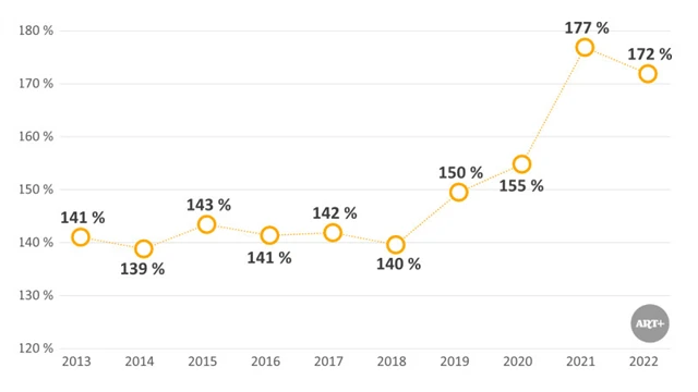 (průměrné navýšení v %)
