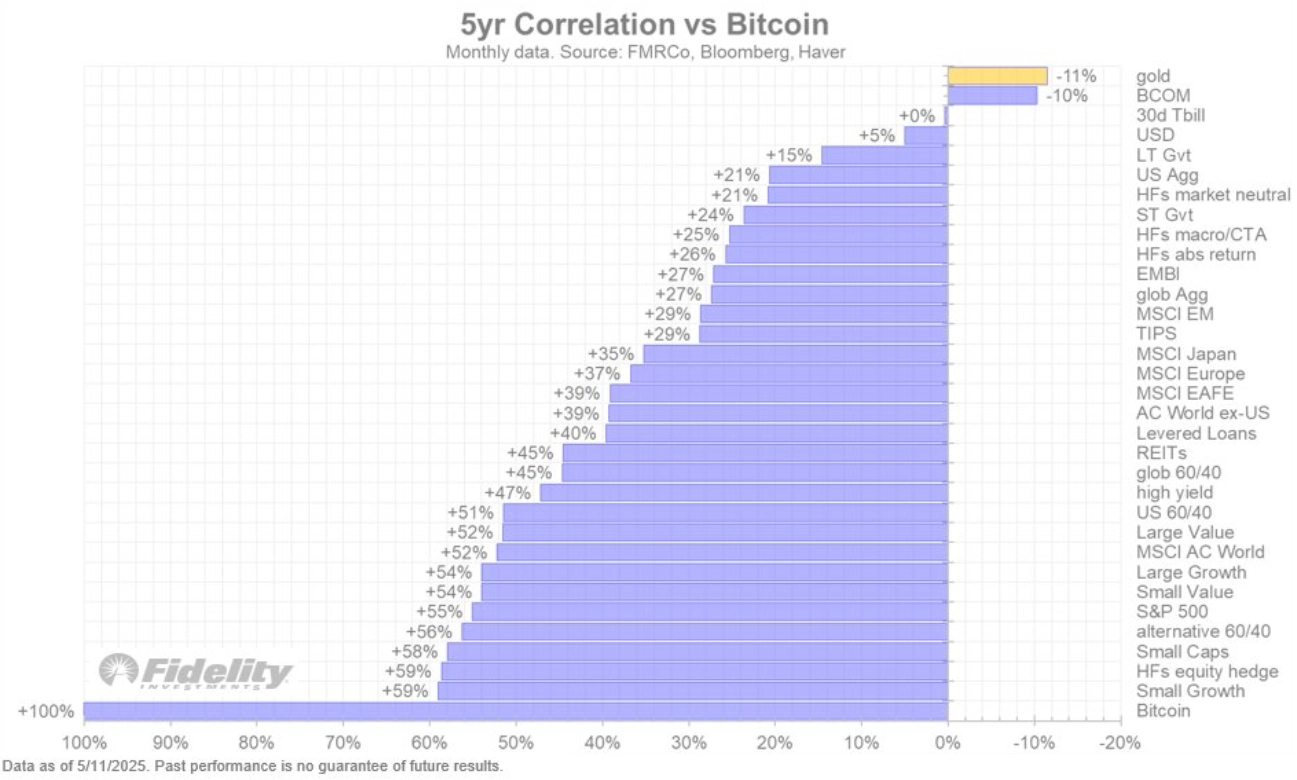 To, že bitcoin a zlato neposkytují stejnou (ať už dobrou, nebo špatnou) ochranu před tržními a hospodářskými stresy, je patrné i z jejich dlouhodobě negativní korelace. "Fascinuje mě, že nejvíce negativně s cenou bitcoinu koreluje cena zlata. U dvou investic, které mají tak či onak pověst uchovatelů hodnoty, bych to zkrátka nečekal. Bitcoin je trochu jako Dr. Jekyll a Mr. Hyde, někdy se 'chová' jako zlato, jindy jako technologický akciový index Nasdaq," podotýká Jurrien Timmer, globální stratég společnosti Fidelity Investments.